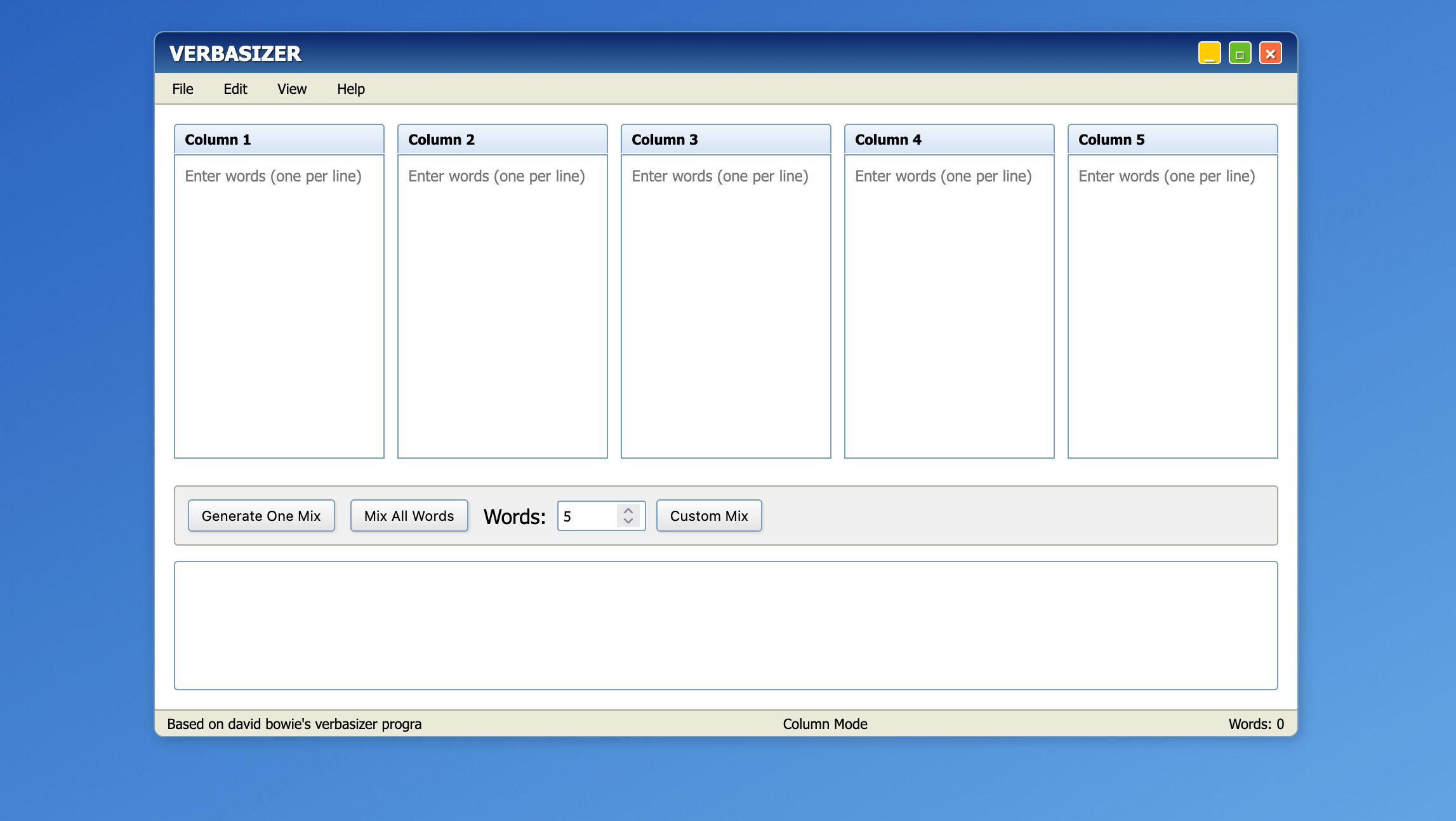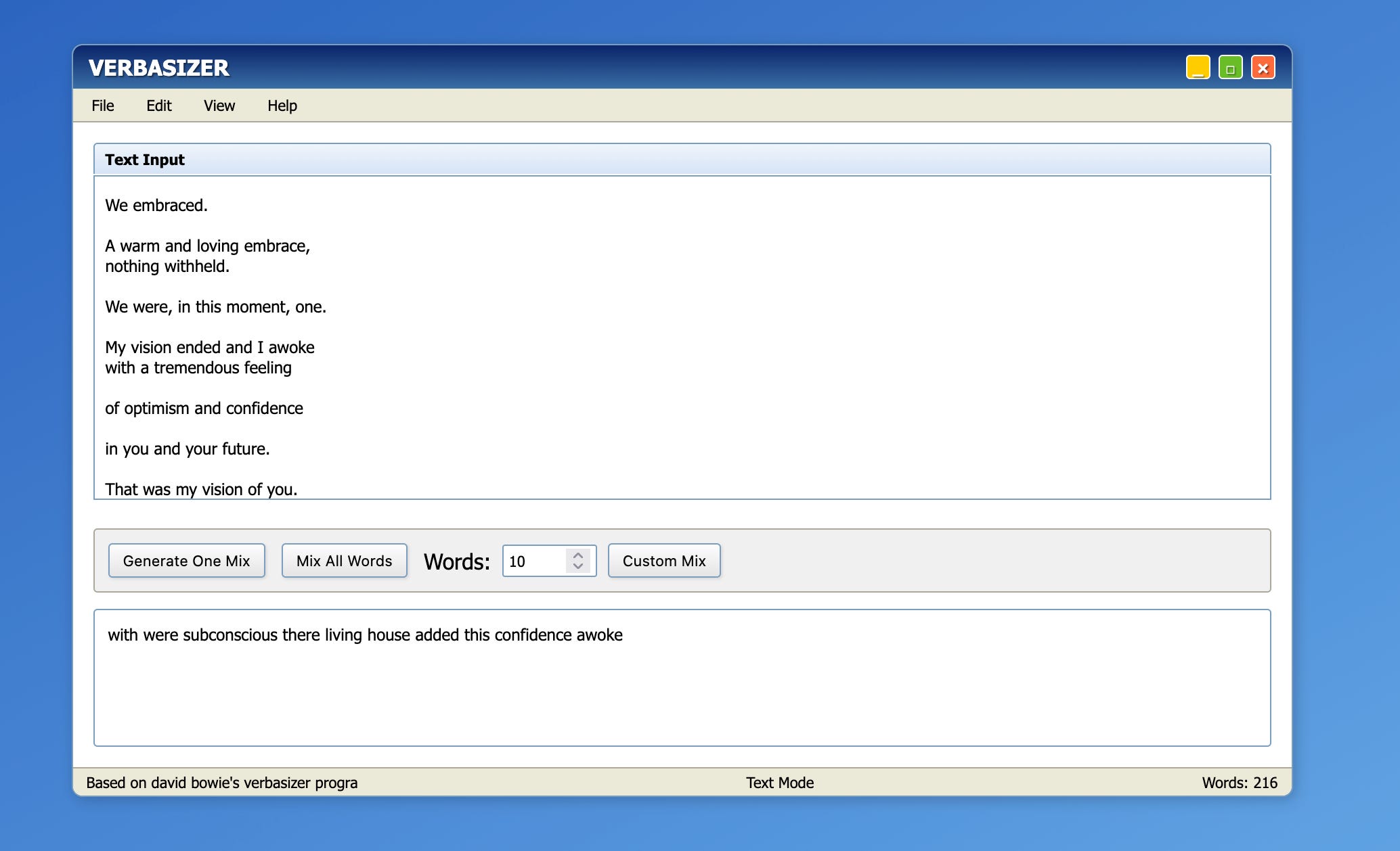 Many months ago, I came across this video of David Bowie showing off a tool he and a friend made called the “verbasizer.” He describes it as: